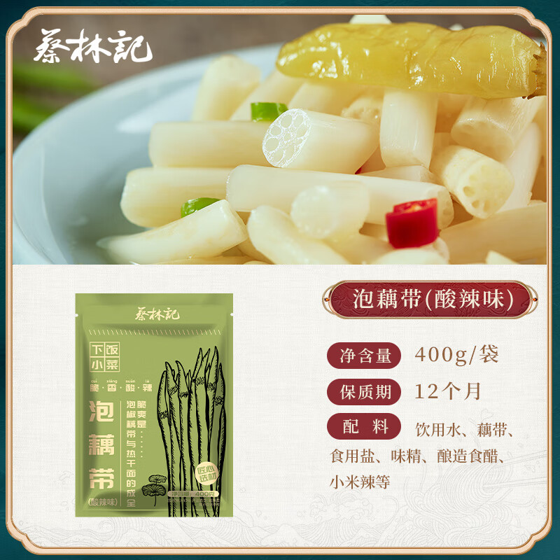 蔡林记 藕带 Chinese pickles made from lotus roots Sour and spicy delicious Chinese food 400g per bag/14.11oz
